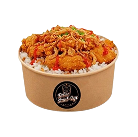 Riz chaud, tenders croustillants, sauce maison, oignons frits, sauce au choix, ciboulette + 1 boisson 33cl au choix.
